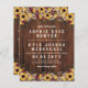 Rustikale zwei in einem Budget Hochzeitseinladung gedruckt auf dünneres Papier mit Sonnenblumen, Blume in rot und bordeauxrot, Beeren und Früchte mit einem warmen Holzaussehen bedruckt. Fügen Sie Ihre Namen und Hochzeitseinladung in rustikalen Schriftart. Auf der Rückseite fügen Sie Ihre Hochzeitsdetails wie Unterkunft, Website, wie UAWG oder alles andere, was Sie brauchen.