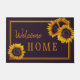 Rustikales modernes Welcome Zuhause Doormat Template mit großen gelben goldenen Sonnenblumen.