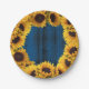Rustikale Sonnenblumen Navy Blauer Stall Holz Papier Teller.
