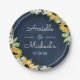 Rustikale Sonnenblumen Navy Blauer Wald Hintergrun Pappteller