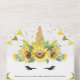 Erleben Sie Ihren Aufenthalt mit dieser eleganten Babydusche und genießen Sie ein niedliches Einhorn mit wunderschönen gelben Blumen auf weißem Hintergrund mit abnehmbarer Reservierungskarte. Fügen Sie einfach Ihre Veranstaltungsdetails zu dieser einfach zu bedienenden Vorlage hinzu, um sie zu einer einmaligen Einladung zu machen.
