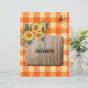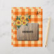 Spezielle Textseite für rustikale Rezeptorbinder im Landhausstil mit Sonnenblumensträuchern und bedrücktem Naturholz über einem trendigen rostigen, orange-gelben Terracotta kariert Gingham Muster. ++++++++++++ Persönlich mit Ihrem Text (Titel der Rezeptkategorie) und Ihrem Familiennamen-Monogramm / Name initial!