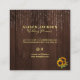 Rustikale, moderne, quadratische Visitenkarte mit einem großen Blumenstrauß, Streichern aus bunten Lichtern und goldenen, trendigen Schriftzeichen auf einem klassischen dunkelbraunen Holzboden. +++++++++++++ Geeignet für rustikale Hochzeitsplaner, Gärtner, Landschaftsdesigner, Floristen, Fotografen.