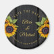 Traditionelle Hochzeiten im rustikalen Land bewahren den Datteleisenmagnet mit wunderschönen Sonnenblumenbouquets auf dunkelbraunem Holzhintergrund. ++++++++ Ideal für einen Sommer- oder Herbstsommer, für einen eleganten Garten im Freien, eine Bauernstall oder eine Hochzeit im Hinterhof. Personalisieren Sie es mit den Namen der Braut und des Bräutigams, dem Hochzeitstag und dem Ort!