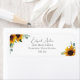 Dieses elegante Label für die Hochzeitsrückgabe bietet handbemalte Aquarellsonnenblumen und Eukalyptusgrün. Diese wunderschönen, gelben Blume im Herbst sind das Set für Ihren Sommer oder Ihre Hochzeit im Herbst. Passen Sie die Einladung mit Ihren Namen, Ihrem Hochzeitstag und Ihren Veranstaltungsdetails an.
