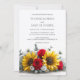 Rustikale Sonnenblumen- und rote Rosen-Hochzeit Einladung