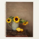 Sonnige Gedanken mit einem Vintagen Foto von Sonnenblumen und Zitronen auf einem Küchentisch. Tones von Vermeer und holländische Meister in einem modernen fotografischen Stil. Stellen Sie den Titel ein und wählen Sie die gewünschte Farbe für die Rückseite aus.