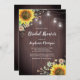 Die Brautdusche ist mit rustikalen Sonnenblumenmöbeln mit Blume, Holz und Glaskeramikstrahlleuchten ausgestattet. Personalisieren Sie sie mit Ihrem eigenen Text. Diese Einladungen sind Teil einer Kollektion, die eine komplette Palette von passenden Hochzeitsartikeln und anderen Brautpartys umfasst. Besuchen Sie die Sammlungs-Seiten in unserem Geschäft, um die komplette Produktpalette zu sehen, die Sie für Ihren Hochzeitstag personalisieren können.