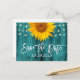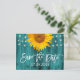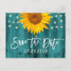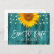 Rustikale Sonnenblumen & Streichelleuchten Aquamarines Stallholz Hochzeit Speichern Sie die Datum Ankündigungen.