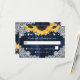 Rustikales Marineblau und Sonnenblumen Hochzeit RSVP Karten. Perfektes Kartendesign, um Ihre marineblaue rustikale Hochzeitsfeier zu ergänzen, inspiriert von Sonnenblumengeschmack-Blume. Matching-Elemente verfügbar.