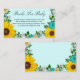 Rustikale Babyduschbücher für die Babykarte mit blühenden Sonnenblumen, traditionellen Weißtönen und aquamarinen Blume vor einem hellen Aquahintergrund mit Babyatmen und botanischen Akzenten im Grünen