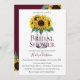 Wasserfarbene Sonnenblume Blumenstrauß in rustikalem Glas, Brautdusche Einladung. Texten anpassen, Stil, Farbe und Größe des Schriftartes anpassen. Auch die in bordeaux abgebildete Hintergrundfarbe kann individuell angepasst werden.