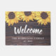 Eine rustikale Begrüßungstür für Ihre Zuhause mit einem Imitat aus dunklem Holz, fröhlichen Sonnenblumen Wasserfarben und Ihrem Familiennamen und Jahr etabliert.