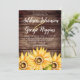 Elegante Hochzeitseinladung für Ihre Sommerhochzeit! Wasserfarbene Sonnenblumen unten auf einem Stallholzhintergrund. Verwenden Sie diese Vorlage Karte für Ihre rustikale Land Thema Hochzeit. Passen Sie dieses Produkt an, indem Sie Ihre eigenen Hochzeitsinformationen hinzufügen. Schönes gelbes Blumendesign.