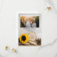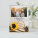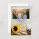 Passen Sie die natürlichen rustikalen Sonnenblumenwälder Hochzeit Save the Date Announcement mit den persönlichen Namen des Paares, Ehezeremonie Datum und Foto. Dieses Land chic Brunnenwald oder Wald inspo Nuptial behielt die Dattelkarte mit einem malerischen Naturfoto von einer gelben Sonnenblumenblüte, Holzschnitzen mit den SAVE THE DATE verbrannten Worten, braune Kiefernkegel und weißer Brautschleier mit einem Kratzer und weißem Satin Hintergrund.