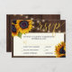 Rustikale Herbstsonnenblumen Hochzeit Einladung Antwort Karte mit Mahlzeiten Optionen auf einem braunen Holzboden mit Saiten von bunten Lichtern.