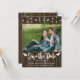 Ehepaar Foto Save the Date Hochzeitsankarte mit Website-Informationen, Braunholz mit weißem Schriftart.
