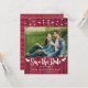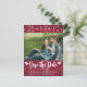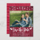 Ehepaar Foto Save the Date Hochzeitsankarte mit Website-Informationen, rotes Stallholz mit weißem Schriftart.