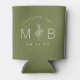 Vollfarbige, individuell bedruckte Farbkeller machen eine lustige und funktionelle Gastgeschenk Hochzeit Ihre Gäste werden Liebe! Personalisieren Sie die Vorlage mit den Namen der Braut und des Bräutigams oder Monogramminitialen. Fügen Sie Ihren Hochzeitstag, die Stadt, den Staat oder den Veranstaltungsnamen oder einen anderen benutzerdefinierten Text hinzu. Dieses moderne Design im rustikalen Logo-Stil hat einen einfachen Blumenstamm und gemischte Typografie in dunkelolivgrün und weiß. Verwenden Sie die Designtools, um eine beliebige Hintergrundfarbe auszuwählen, die Schriftart zu bearbeiten oder Ihre eigenen Fotos hochzuladen, um eine ganz individuelle Hochzeitsgunst zu kreieren, die Ihren Hochzeitsfarben und Ihrem Stil entspricht!