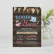 Rustikale Stiefel und Bögen zeigen Party Einladungen. Ein einzigartiges landesspezifisches Geschlecht offenbart Einladung, mit einem Burlap Banner, rosa Bogen und ein Paar blaue Cowboystiefel auf einem Stallholzhintergrund.