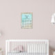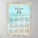 Dieses Poster-Hochzeitsdiagramm zum Thema Strand bietet niedliche Pinguine, einen wunderschönen Aqua-Strand-Hintergrund gerahmt mit rustikalem, verwittertem Holz und Lichter an der Spitze.