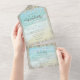 Diese All-in-One-Hochzeit lädt Sie ein, die Einladung und die tränenreiche UAWG, und kann gefaltet und per E-Mail verschickt werden, sodass Sie keinen Umschlag benötigen. Gerahmt mit einem Hintergrund aus rustikalem, verwittertem, grauem Holz stürzen die schönen Wellen des Wassers am Strand ab, und die Lichter der Saiten schmücken den Gipfel. Diese Einladungen eignen sich hervorragend für Hochzeiten in Urlaubsort, aber auch für Hochzeiten mit Strand- und Küstenthemen.