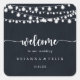 Dieser rustikale Streichlichter kalligrafischer Begrüßungs-Aufkleber ist perfekt für eine einfache Hochzeit. Das Design zeichnet sich durch schöne handbemalte Saitenleuchten in dunkelblauem Hintergrund aus. Diese Labels eignen sich perfekt für Begrüßungstaschen und Hochzeiten in Urlaubsort.