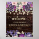 Begrüßung Begrüßungsbanner / Schild mit einem rustikalen Stallholz-Design mit Saitenleuchten und rosa und lila Aquarellblumen.