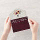 Rustikale Eleganz und moderne Eleganz vereinen Sie mit unserer Einladung zu einer Bordeaux Holzhochzeit. Dieses charmante Design besticht durch eine bordeauxfarbene Holzkulisse, die mit zarten Aquarellfarben in einem Mason-Glas, einem anmutigen Monogramm und dem warmen Glanz kreider Saitenleuchten geschmückt ist. Die perfekte Mischung aus rustikalem Charme und zeitgenössischem Stil vereint das Wesen Ihres besonderen Tages. Personalisieren Sie diese Einladung mit zwei hochgeehrten Fotos des glücklichen Paares und fügen Sie eine herzliche Touch. Vereinfachen Sie Ihre Hochzeitsplanung mit einem komfortablen QR-Code und einem Weblink für RSVPs und weiteren Details. Ideal für rustikale, landschaftliche oder boho Hochzeiten, Set für ein unvergessliches Fest. Wichtig: Diese Öko-freundliche All-in-One-Einladung erfordert einen separaten Briefumschlag.