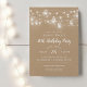 Erschwingliche, individuell gestaltete Geburtstagsparty-Einladungen mit einer leicht zu bedienenden Vorlage für die Anpassung. Dieses rustikale Design besticht durch leuchtende Saitenlichter und Maurerkrüste auf einem Imitat aus Kraftpapier. Personalisieren Sie die Einladung mit Ihrem Geburtstag Abendessen Party Details oder anpassen Sie den Text für jede Veranstaltung zu verwenden. Verwenden Sie die Designtools, um Fotos hinzuzufügen und die Schriftart und Farben des Textes zu verändern, um ein einzigartiges Design für Ihre Geburtstagsfeier zu schaffen.