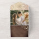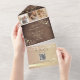 Die elegante und moderne Hochzeitseinladung, die Wärme des rustikalen Holzes mit dem Schimmer der goldenen Rose Akzente zu verbinden. Mit zauberhaften Lichtern und vergoldeten Blumenspitzen verziert, Set diese Einladung einen romantischen Ton für Ihren besonderen Tag. Dann zeigen Sie vier individuelle Bilder des Paares, neben einer Website und QR-Code für nahtlose UAWG und zusätzliche Informationen. Erleben Sie die Schönheit Ihrer Liebe mit dieser exquisiten Einladung und versprechen Sie eine Feier voller Freude und gepflegter Erinnerungen.