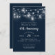 Erschwingliche, kundenspezifische Party Einladungen zum 40. Hochzeitstag mit einer leicht zu bedienenden Vorlage für die Anpassung. Dieses rustikale schicke Design besticht durch leuchtende Saitenlichter und Glaskeramikgläser auf dunkelmarineblau blauem Hintergrund. Personalisieren Sie die Einladung mit Ihren Jubiläumsdetails oder passen Sie den Party für jede Veranstaltung an. Verwenden Sie die Designtools, um eine beliebige Hintergrundfarbe auszuwählen, Fotos hinzuzufügen und die Schriftart und Farben des Textes zu verändern, um ein einzigartiges Design für Ihr Jubiläumsjahrsgeschenk-Party zu erstellen.