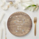 Ein rustikaler Teller aus Landpapier mit Saitenleuchten über einem Vintagen Mauerkessel, der mit Ihrer personalisierten Nachricht gefüllt ist, und verstreuten delikaten Wildblumen auf einem natürlichen Hintergrund aus verwittertem Holz. Ideal für Hochzeiten, Brautpartys, Babyduschen, Taufen, Verlobungsfeiern, Jubiläumsfeiern, Abschlüsse, Geburtstagsfeiern und andere besondere Veranstaltungen das ganze Jahr über! von Thisisnotme© entwickelt