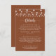 Diese rustikale Saitenleuchte Terracotta Hochzeitsdetails Gehäuse Karte ist perfekt für eine klassische Hochzeit. Das Design besticht durch schöne handbemalte Saitenleuchten in Terrakotta-Hintergrund.
