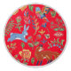 Was für ein heller, farbenfroher Akzent für eine rustikale oder ländliche Küche, Badezimmer, Kinderzimmer oder Handwerk! Folk Art - Design Blume, Blätter und lebendige Tiere Pop auf einem roten Hintergrund. Es gibt einen Fuchs, ein blaues Hasen, einen Vogel und Käfer. Whimsical, Original-Kunstwerk & Design von Tuzi Williams.