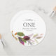 Rustikale Aquarellkarte in einem runden Format umrahmt Ihre Details mit einem Rahmen aus Faltenblättern in Pflaumentönen, Püree, Orange und Grün auf einem knusprigen, weißen Hintergrund. Der Schriftart ist Set in modernen Sans Serif und Schrift Typografie. Ideal für Herbstgarten Themenhochzeiten. Um mehr moderne Empfang Tischnummer Designs mit Blätter zu sehen, besuchen Sie VG Invites on Zazzle