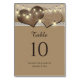 Rustikale Hochzeitskarte mit Höhlenherzen und Saitenleuchten für die Tischnummer.