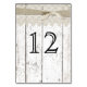 Rustikale Hütte schicke Hochzeitskarte Tischnummer in einem Not weiß gewaschenen Holzlook gemacht. Grafiken von lieblicher Elfenbeinspitze, oben gestrichelt, und ein doppeltes Elfenbeinband in einem Knoten läuft über die Breite des Spitzen-Headers. Die große schwarze Zahl ist bereit, für jeden Tisch auf Ihrem Empfang zu personalisieren. Matching-Produkte verfügbar.