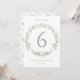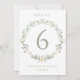 Grüne elegante botanische Aquarell weiße Blume mit Eukalyptus-Blätter für rustikale Garten Hochzeit Tischnummern.