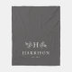 Als koordinierendes Stück der Rustic Monogram Kollektion von Lea Delaveris Design weist diese Decke einen neutralen Schiefergrauen Hintergrund mit einem Monogramm, umgeben von Zweigen, einem Nachnamen und festem Datum auf. Matching Kissen vorhanden. Ideal für ein Geschenk oder ein Brautparty für Neuvermählte!