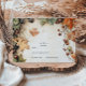 Set den Ton für eine warme und romantische Herbstfeier mit diesem rustikalen Design. Mit handbemalten Weinreben, Herbstblättern und Eichen bringt es die Schönheit der Natur in Ihren Hochzeitstag. Der gesamte Text ist vollständig editierbar.