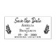 Rustikale Twigs Wedding Save the Date Gummi Briefmarke. Erstellen Sie Ihre eigene Save the Date Briefmarke mit den Blätter und Zweigen der Pflanze. Das Design Save the Date handgeschriebene Schrift, Braut- und Bräutigam-Namen, Hochzeitstag und Hochzeitsort. Personalisieren Sie die Briefmarke mit Ihren Daten.