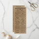 Vintage rustikale Typografie Stil Hochzeitsprogramme mit schwarzer Schrift auf einem rustikal bedrückten braunen Hintergrund. Zimmer für 6 Jungfernhäuser und Trauzeugen zusätzlich zur Trauzeugin und zum Trauzeuge. Der Wortlaut ist in einem Schriftstil abgedruckt. Die Hochzeitsfeier ist auf der Vorderseite und die Reihenfolge der Zeremonie ist auf der Rückseite. Zimmer für "In Erinnerung an" für Großeltern, die weitergegeben haben, und auch Raum für Dankeschön an die Braut und Bräutigam. Adresse am Empfang unten. Die Hochzeitsvorstellung ist mit eigenen Details versehen: Hochzeitsfeierprogramm, typografisches Hochzeitsprogramm, rustikales Hochzeitsprogramm, Hochzeitsfeier, Hochzeitsfeier, Vorlagen, Hochzeitsfeierlichkeiten, Deko, Spielplan, Hochzeitsfeier, Vorlagen