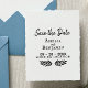 Rustikale Typografie Custom Wedding Save the Date Briefmarke. Erstellen Sie Ihre eigene rustikale Save the Date Briefmarke mit den Pflanze-Blätter. Das Design Save the Date Text in trendiger Typografie, Braut- und Bräutigamen, Hochzeitstag und Hochzeitsort. Personalisieren Sie die Briefmarke mit Ihren Daten.
