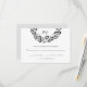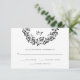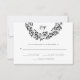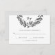 Dieses moderne rustikale Hochzeitsdesign besticht durch einen schwarzen botanischen Kranz auf weißem Hintergrund. Die Rückseite der RSVP-Karte ist ein passendes weiches Grau.