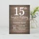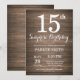 Rustikale Überraschung 15. Geburtstag Einladung. Rustikaler Holzhintergrund. Vintager Retro Geburtstag. Kindergeburtstag. Junge oder Girl Bday einladen. 13. 15. 16. 18. 20. 21. 30. 40. 50. 60. 70. 80. 90. 100. Jedes Alter. Für weitere Anpassungen klicken Sie bitte auf die Schaltfläche "Anpassen" und verwenden Sie unser Designwerkzeug, um diese Vorlage zu ändern.