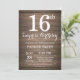 Rustikale Überraschung 16. Geburtstag Einladung. Rustikaler Holzhintergrund. Vintager Retro Geburtstag. Kindergeburtstag. Junge oder Girl Bday einladen. 13. 15. 16. 18. 20. 21. 30. 40. 50. 60. 70. 80. 90. 100. Jedes Alter. Für weitere Anpassungen klicken Sie bitte auf die Schaltfläche "Anpassen" und verwenden Sie unser Designwerkzeug, um diese Vorlage zu ändern.
