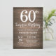 Rustikale Überraschung 60. Geburtstag Einladung. Rustikaler Holzhintergrund. Vintager Retro Geburtstag. Erwachsener zum Geburtstag. Männer oder Frauen laden ein. 13. 15. 16. 18. 20. 21. 30. 40. 50. 60. 70. 80. 90. 100. Jedes Alter. Für weitere Anpassungen klicken Sie bitte auf die Schaltfläche "Anpassen" und verwenden Sie unser Designwerkzeug, um diese Vorlage zu ändern.
