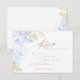 Moderne Hochzeitsblumen mit weißen und blauen Blumen mit goldenem Staub sind elegant und klassisch. Das Design besticht durch einen handgeschriebenen Schriftart und modernes minimalistisches Design. Klicken Sie zum Ändern der Details auf "Personalisieren".