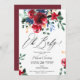 Rustikale Herbst rot bordeauxrot und blumenblumenblaue Babydusche mit schöner Schrift Kalligrafie. Oh, Baby! Perfekte romantische und elegante, neutrale Babydusche.